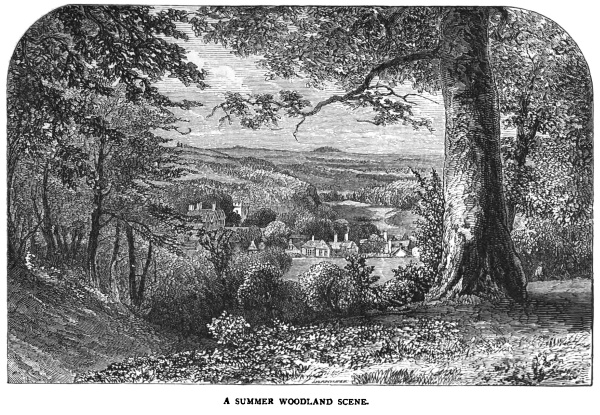 About a quarter of a mile from Monymusk is New Paradise, a kind of a sylvan fairy-land. Here are miles of charming walks, here are rustic-seats, and wells, and streams and bridges, and arbours, and a lake, the whole embosomed in woods, in which are many a bosky dell beloved of birds and all kinds of wild forest creatures. There are little glades, where ferns and brackens grow nearly ten feet high; it is sweet to see the soft evening sunshine shimmering down from among the trees, and falling on these, their greenery relieved by patches of warm autumn brown, and by the crimson lights of tall foxgloves.