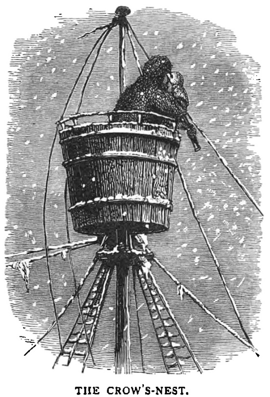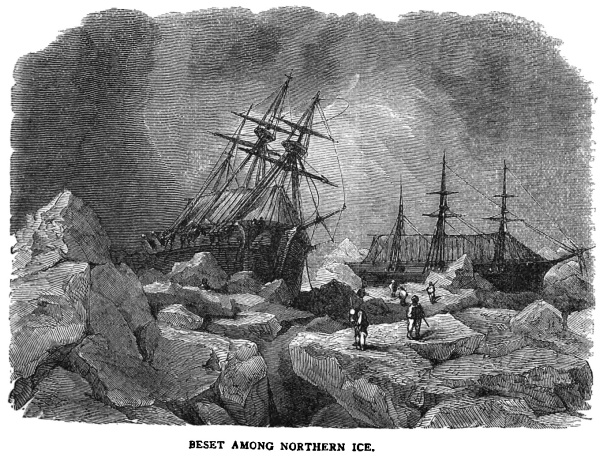 “I say we sojourned there, but this need not give you the idea that we stopped there of our own free will, for the truth is we were caught in a trap—a large one sure enough, but still a trap. We found ourselves one morning in the midst of an ocean lake, or piece of open water in the ice-field, as nearly circular as anything, and about four miles in width. We wanted to get out, but everywhere around us was a barrier of mountainous icebergs. So, baffled and disappointed, we took up a position in the centre of the lake, blew off steam, banked our fires, and waited patiently for a turn in events.