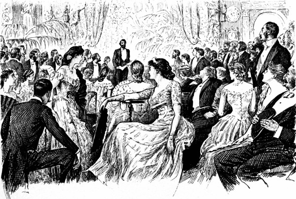 Mrs. Gushington (aside to her husband).—"What a long, tiresome piece of music that was! Who's it by, I wonder?"