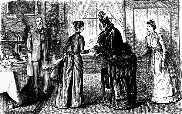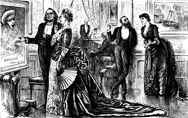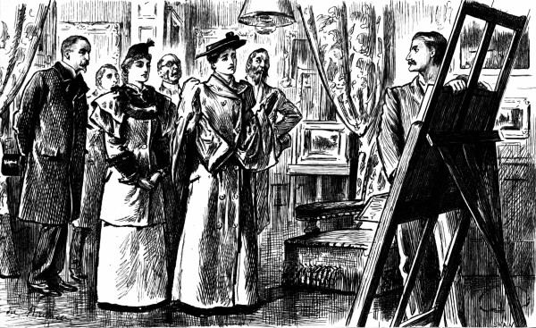 Just as Stodge is about to explain the recondite subtleties of his picture to a select circle of deeply interested and delightfully sympathetic women, his wife comes in with the baby, confound it!