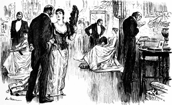 If I venture to say that sentimentality is the dominant of the Du Maurier music, it is because his art has made sentimentality beautiful; I had almost said real, and I am ready to say different from what it was before. It is a very manly sentimentality; we need not be ashamed of sharing it; one should rather be ashamed of disowning its emotions. It is in its sweetness, as well as its manliness, that I find the chief analogy between Du Maurier's literature and his art. In all the long course of his dealing with the life of English society, I can think of but two or three instances of ungentleness. The humor which shone upon every rank, and every variety of character, never abashed the lowly, never insulted women, never betrayed the trust which reposed in its traditions of decency and generosity. If we think of any other caricaturist's art, how bitter it is apt to be, how brutal, how base! The cruelties that often pass for wit, even in the best of our own society satires, never tempted him to their ignoble exploitation; and as for the filthy drolleries of French wit, forever amusing itself with one commandment, how far they all are from him! His pictures are full of the dearest children, lovely young girls, honest young fellows; snobs who are as compassionable as they are despicable, bores who have their reason for being, hypocrites who are not beyond redemption. It is in his tolerance, his final pity of all life, that Du Maurier takes his place with the great talents; and it is in his sympathy for weakness, for the abased and outcast, that he classes himself with the foremost novelists of the age, not one of whom is recreant to the high office of teaching by parable that we may not profitably despise one another. Not even Svengali was beyond the pale of his mercy, and how well within it some other sorts of sinners were, the grief of very respectable people testified.