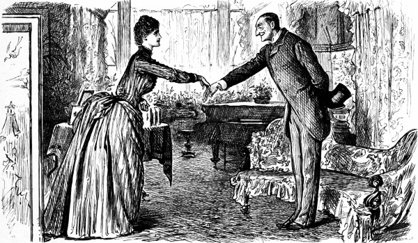 She.—"Oh, certainly." (Gives it.)