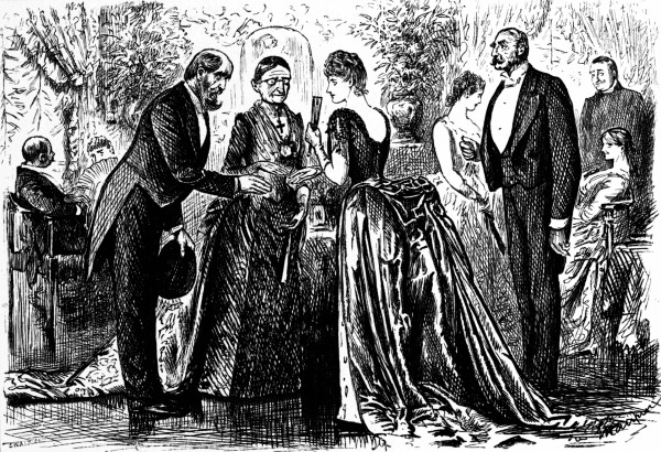 Mrs. Constantia (to old adorer, who has married for money).—"And these are your children, Ronald? Oh!... how like their mother!"