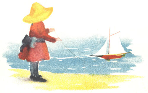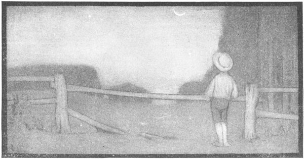 On this page is the same little piece of the world we saw under sunset skies. The sun has gone to rest, and the bright colors in the sky have given place to darkness. But in the midst of the darkness the moon rises, and sheds its white light over the sleeping world. How beautiful "out-of-doors" is now!