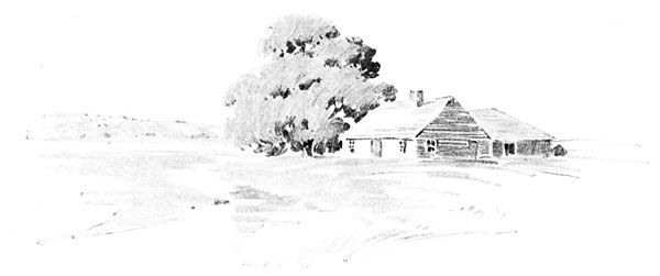If you look on page 4 you will see three little pictures that seem quite complete in themselves, and yet look like parts of the picture on page 2. The upper sketch shows the same big tree by the stream, and the lower right sketch has been taken from the left side of the large picture. A small part near the middle of the large picture was then selected, and this part was enlarged to make the third sketch shown.