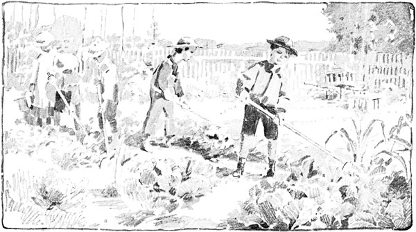 See the children in the picture. One boy "clubs" the tree until the nuts come rattling down and are half hidden in the grass and dry leaves.
