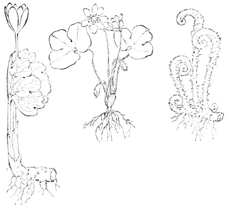 | Bittersweet, Iris, and Geranium in Color; Use of the Finder in Sketching most Interesting Part of a Growth for a Sketch; Flowers and Leaves in Different Positions; Growth of Stems, Joints, Buds, Leaves, and Sprays; Root Growths; Use of the Accented Outline; Composition from Plant Forms. | |