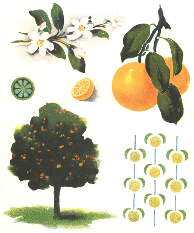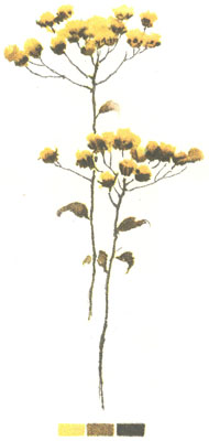 In our houses, too, everything has color—not the bright hues that we find in flowers and landscapes, but softer, grayed color. We would not like carpets and wall-paper of the bright color we find in poppies, for instance. The colors we use in our furnishings should not be glaring and intense, but quiet and restful. To find these color relations, and to train the eye to know and enjoy fine color harmonies, we study what artists have done, in paintings and other works of art. In nature, too, we find color suggestions in endless variety. In autumn the world is flooded with rich color. Even the common weed that is shown you on this page shows a combination of colors that would be safe to use in any work of our own. See how the colors in the plant have been arranged in a little scale. Such an arrangement is called a color scheme.