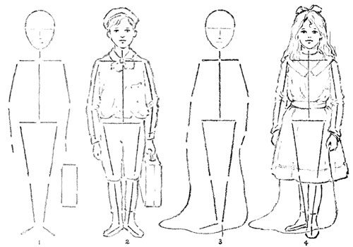 Measure the height of the sycamore tree in the sketch,—from the topmost twig to the ground,—and see what part of the whole height the trunk below the foliage measures. Is it half as high, or only a fourth or a third? Notice trees out of doors and see how much of their height is above the trunk. Children sometimes draw trees with tall, stiff trunks and short, stunted tops.