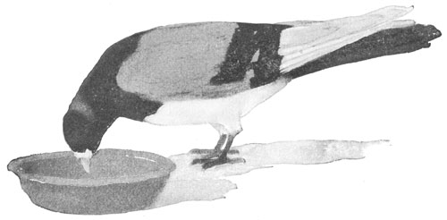 See the darker value of the sky at night, and the pleasing contrast made by the big white moon. A soft gray shadow is over all the snow. The moonlight on the snow does not dazzle our eyes, as the sunshine does by day.