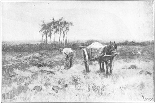 In the picture on this page, painted by Alexander Harrison, an American artist, the horizon line is placed above the middle, so that the artist might show how the waves broke on the shore, and sent rippling, flowing lines of water along the shining sand. The motion of the water is as regular as if it were keeping time to music. Can you see how the big curves seem to mark the beats?