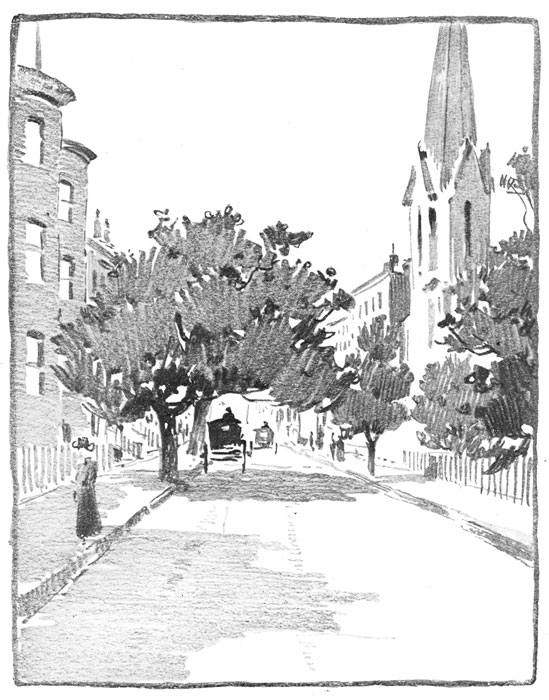 Out of Doors in the City. If all the beauty of out-of-doors were in the country, what a sad thing it would be for the boys and girls who spend their lives in cities and towns! It is true that we think of the country when we speak of the landscape, and many artists go there when they wish to gather material for pictures. But often the things you see out of doors in a city or town are as interesting to sketch as country landscapes.