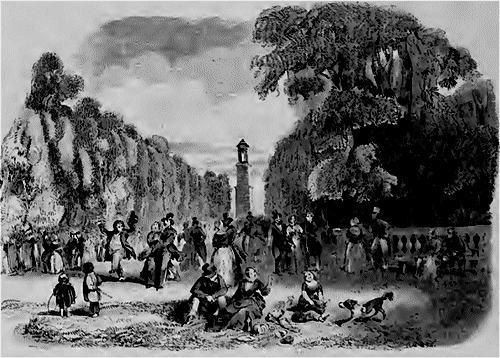 C'est le nom des promenades publiques de Cantorbery. Elles occupent remplacement des anciens remparts, et forment comme une longue chaussée bordée de jolies maisonnettes et dominant les fossés maintenant plantés en jardins. Cette terrasse vous conduit à un petit monticule gazonné, que surmonte un obélisque municipal parfaitement absurde, et destiné à perpétuer la mémoire d'un banquier (James Simmons), aux frais duquel la promenade et les plantations se sont faites.