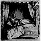 Je ne tardai pas à découvrir la femme de cet être singulier: une créature grasse et blafarde, emmitouflée dans toutes sortes de vêtements noirs, bizarrement surannés. Elle cachait sa tête, constamment penchée vers un prayer book, sous un curieux assemblage de bandelettes en crêpe noir et en mousseline blanche, que surmontait un chapeau de taffetas dont la calotte en dôme et la passe en éventail comportaient toute une série de recherches archéologiques.