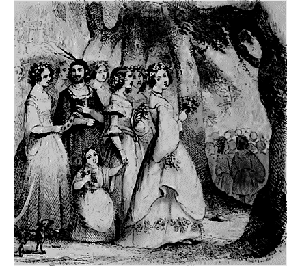 Je n'ai pas besoin de dire qu'à Milan la solennité était plus bruyante et plus raffinée. Nul ne restait chez soi, tous sortaient de tous côtés, et surtout vers un bois qui se trouvait au lieu qu'on appelle encore aujourd'hui Saint-Jean-de-la-Paille. Les dames mettaient leur orgueil à s'y rendre en beaux vêtements blancs relevés d'ornements de couleurs variées, qui tranchaient d'une façon merveilleuse sur le fond obscur de la nuit. Elles étaient décolletées autant que le comportait la saison et l'usage, et parées élégamment de fleurs qui couronnaient leur front, qu'elles tenaient à la main, qu'elles portaient en bouquets à leur ceinture, ou qui couraient en guirlandes au bas de leurs robes. Un grand nombre d'entre elles entonnaient des canzones d'une musique très-simple que les hommes accompagnaient en faux bourdon; les autres menaient des danses pleines de vivacité au son d'allègres symphonies. On ne pouvait entrer dans l'enceinte du bois ni en litière ni à cheval; tout le monde était donc obligé de s'y rendre à pied, nobles et plébéiens indistinctement, pêle-mêle, riches et pauvres: et comme ce mélange favorisait l'oubli des outrageuses différences de fortune, il en naissait une liberté vive et hardie, semblable à celle des bals masqués en carnaval. La nuit, la foule, la commune allégresse, occasionnaient, comme on le pense bien, beaucoup de désordres dans des temps comme ceux dont nous nous occupons.