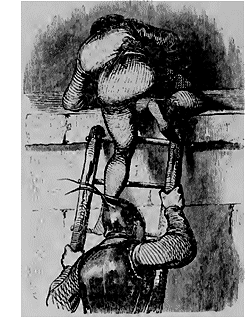 Je ne l'aperçus pas tout d'abord, mon attention se trouvant détournée par une des figures les plus originales que j'aie rencontrées dans la patrie de Cruieshank. C'était un homme de quarante-cinq ans environ, gras, frais, un peu chauve, en culotte courte et bas de soie; un ruban bleu de ciel passait dans une des boutonnières de son gilet noir: décoration mystique dont je n'ai pu me faire expliquer l'origine.