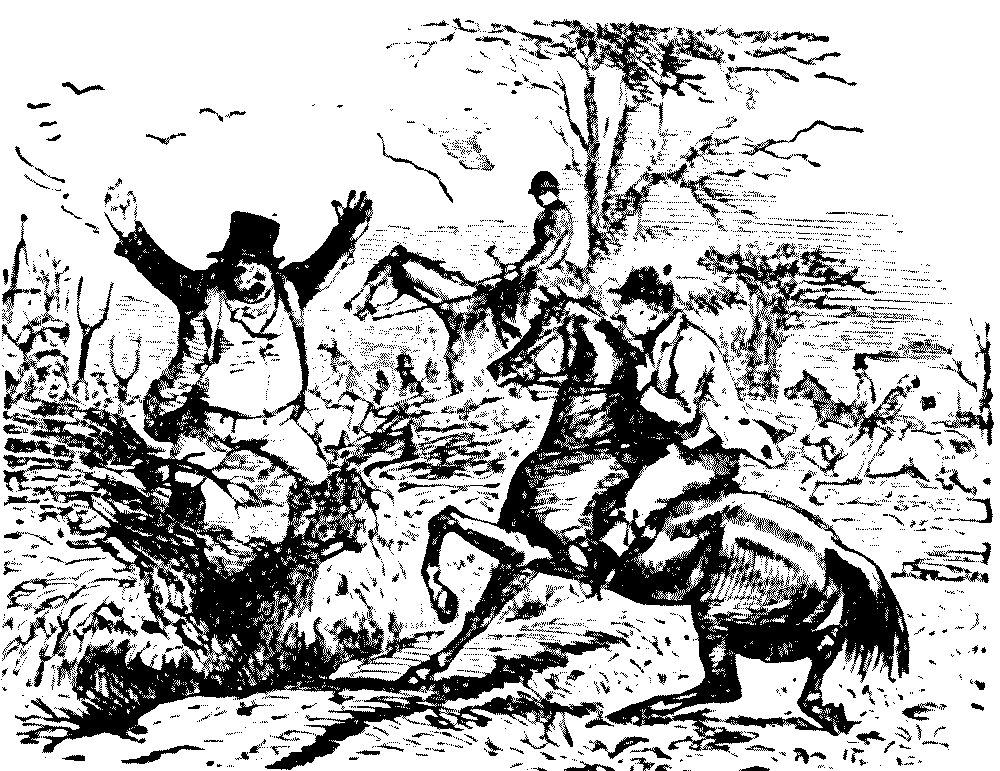 Whip (bringing on tail hounds, in the rear of the field.) "Hulloah! Who've you got there?"