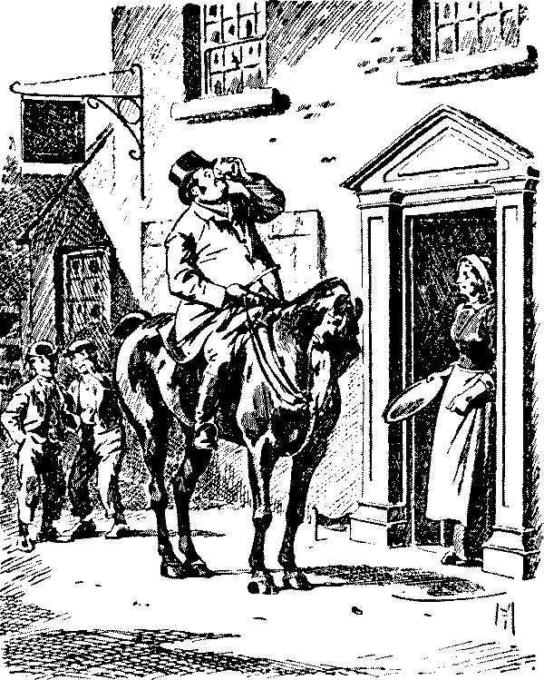 "So you shall, then!" cried a rasping voice, suddenly, from behind me. Sir Hercules[Pg 165] Blizzard was the speaker, an awful man with an awful temper. "So you shall. My idiot of a jockey broke his collar-bone trying to jump one of the fences on this confounded course of yours to-day, so, as I am without a rider, you shall ride my mare Dinah."