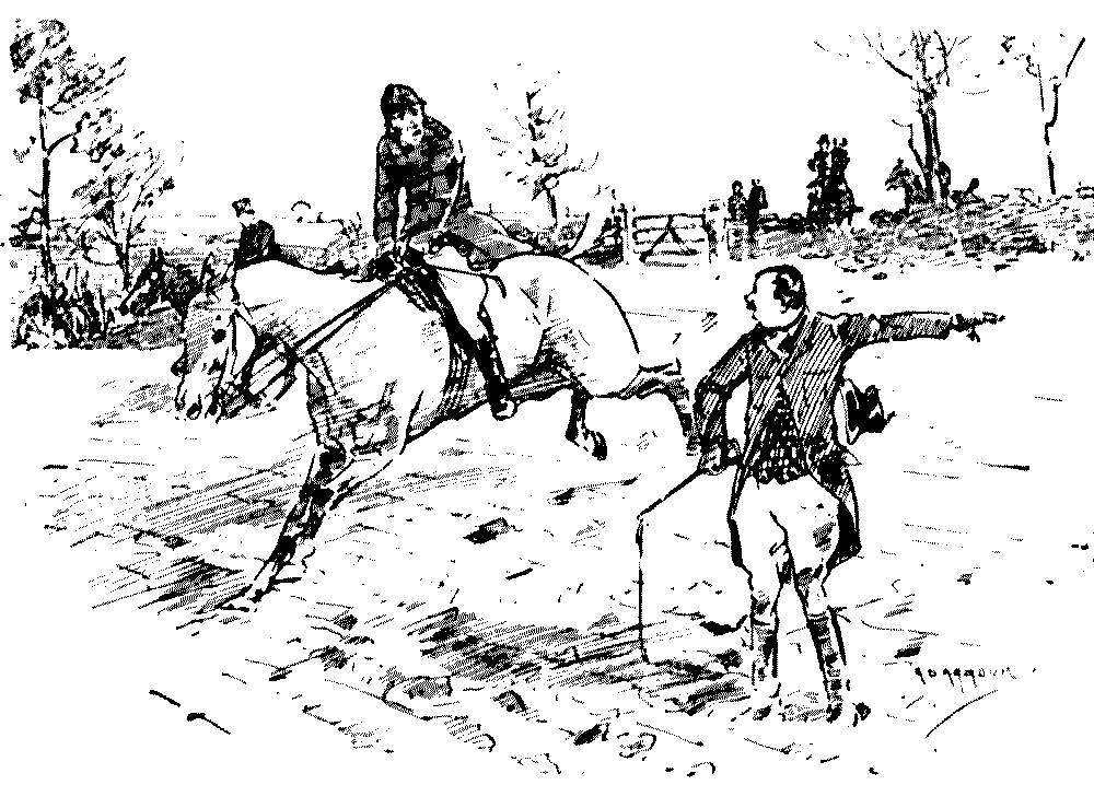 I smiled in pitying and superior manner. "Think so, my dear Sproozer? My horse can't run, worse luck, but I only wish I were going to have the gallop over it."