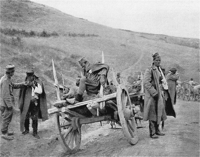 Après la bataille de la Bregalnitza: un convoi de blessés