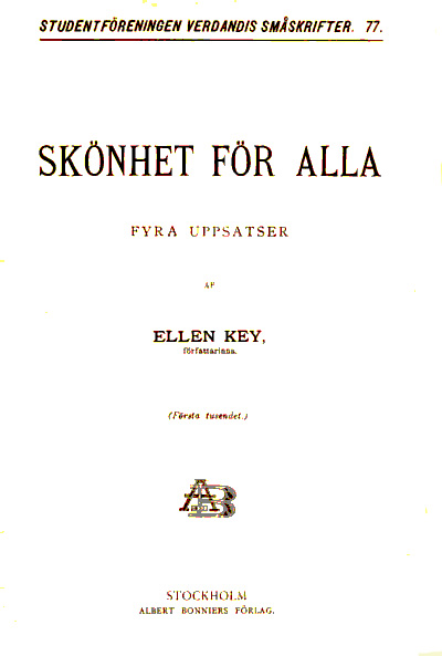 Villkoret för att finna skönheten är att söka den; villkoret att lära förstå den är att älska den! Då tränga vi med hvarje dag allt mer in i dess väsen, lära oss finna de äkta skönhetsvärdena och erhålla sålunda också möjligheten att åt vårt enda, lilla fattiga rum gifva en sådan prägel, att den som där inträder, skall känna att dess väggar omsluta en människa, hvars lif blifvit lyckligare genom att hon kan njuta och välja det sköna.