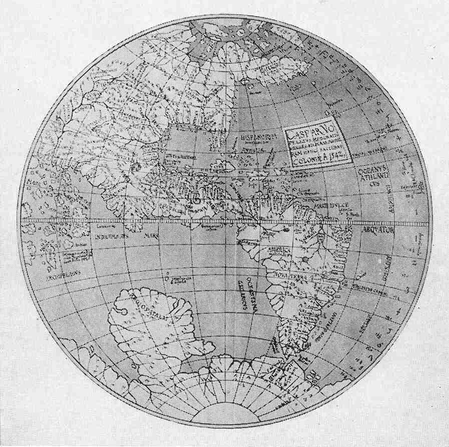194“Many imaginary islands, in the Atlantic, are retained on the globe: including ‘Frisland,’ ‘Buss Ins,’ ‘Brasil,’ ‘Maidas,’ ‘Heptapolis,’ ‘St. Brandan.’ On the eastern side of North America are the countries of Florida, Virginia, and Norumbega; and also a large town of Norumbega up a gulf full of islands.