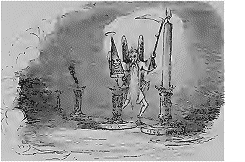Au même moment où le Tempséteint l'année 1843, il allume du bout de la faux l'année 1844, bougie toute neuve qui s'élance fièrement de son chandelier, mèche au vent, en attendant qu'elle brûle à petit feu, comme tant d'autres, et se fonde. Superbe allégorie qui fait voir que le temps reconstruit d'une main ce qu'il détruit de l'autre!