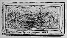 Éveillé par le ra et le fla des tambours de la légion, le lieutenant a revêtu les insignes de son grade; il se dispose à rejoindre ses chers camarades, et à faire sa visite au château pour y déposer sa fidélité, en forme de carte de visite; le guerrier est parfaitement chaussé, culotté, coiffé et ficelé; il a le nez rouge, ce qui est d'uniforme; cependant on s'aperçoit, à son col de chemise s'élançant vers l'oreille, qu'il aurait autant aimé finir son somme que de déposer son hommage.