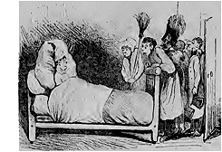 Cette scène d'extrême-onction et de résurrection est représentée ici-même, par un ingénieux crayon, mieux qui je ne pourrais le faire du bond de ma plume. Je te renvoie donc au dessin de Bertal, cher lecteur, avec la modestie et l'abnégation qui me caractérisent.