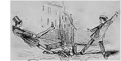 A peine était-il sorti, à la suite de ce malin tour que vous savez; à peine avait-il le pied dans la rue, qu'il fut accosté par le fils puîné d'un de ses amis intimes. Ce détestable moutard, vulgairement appelé To-tor, se précipita à sa rencontre: «Bonjour, papa Chose, s'écria-t-il avec cette grâce qui caractérise l'enfance; ohé! z'veux mes étrennes, z'veux un polichinelle!» En vain cherche-t-il à se soustraire à cet impôt indirect; le terrible To-tor n'en démord pas, et, le saisissant par la basque de habit (son habit neuf!!), il le tire affreusement du coté de la boutique de joujoux. Lui de s'enfuir; To-tor de tirer de plus belle, d'une part l'habit, de l'autre le seigneur Polichinelle; si bien que l'habit reste et que To-tor s'évanouit. La bonne, une ancienne d'Abd-el-Kader, contemple ce spectacle déchirant avec l'immobilité qui caractérise la nation hottentote.