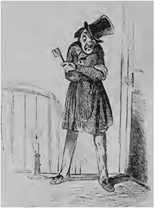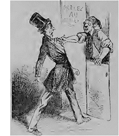 Il est quatre heures du matin... Notre héros malencontreux s'est décidé à se lever de la borne qui lui sert de lit de plume depuis minuit, et à frapper un dernier coup de marteau: ce coup est si désespéré et si lamentable, qu'enfin le portier n'y résiste plus, et tire le cordon; le malheureux entre tout joyeux; mais, ô ruse de portier diabolique! ô trame infernale! les 3 francs 50 cent. ne sont pas suffisamment expiés par toutes ces couleuvres que le récalcitrant locataire avale depuis ce matin: il faut que ce concierge sans âme, sous-prétexte de zèle, lui plonge, à bout portant, un bougeoir allumé dans la poitrine; le jabot prend feu; appelez, les pompiers!