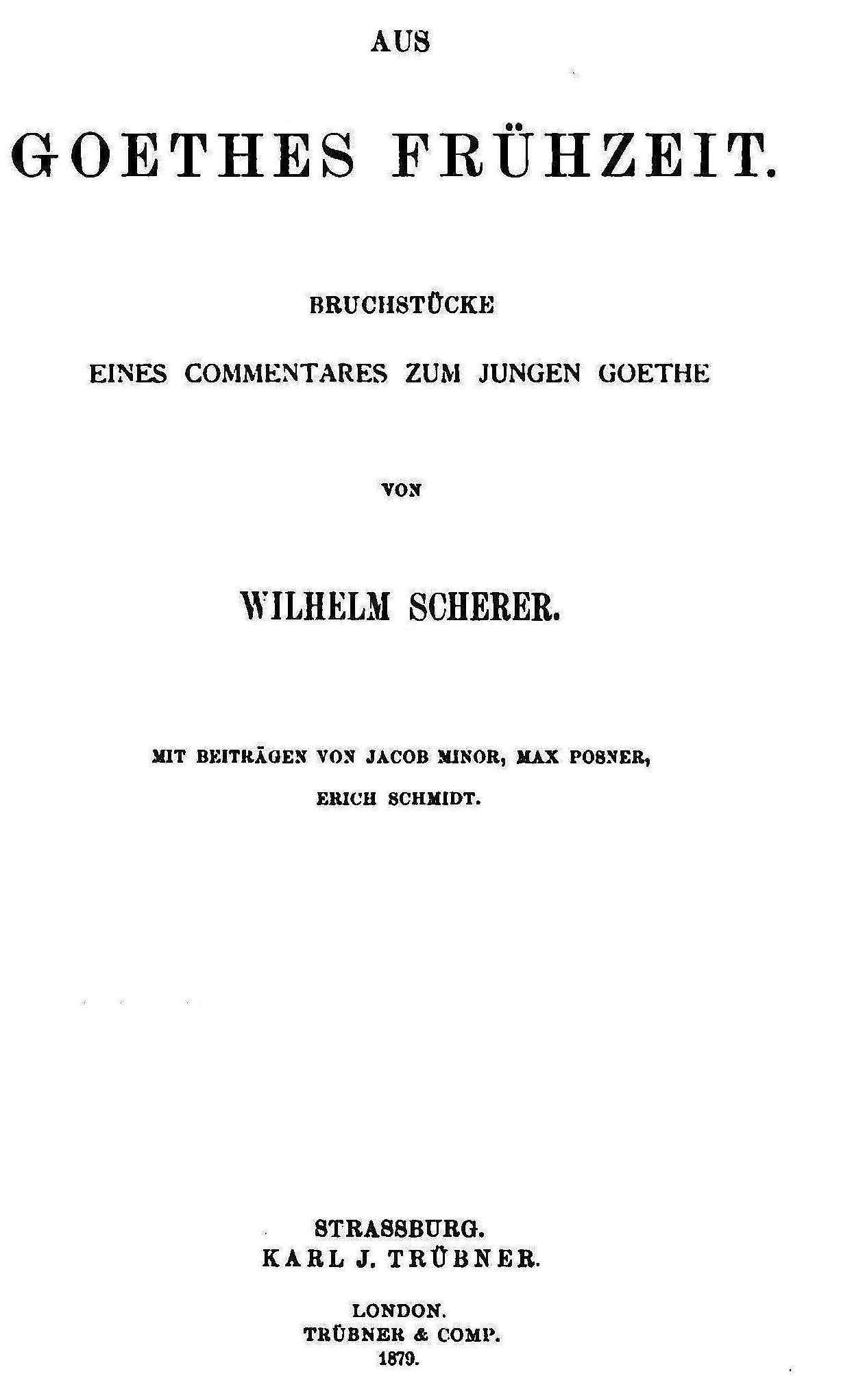Als Salomon Hirzels Sammlung 'Der junge Goethe' (drei Bände, Leipzig 1875) erschien, das litterarische Vermächtnis des verehrten Mannes an die Goethe-Forschung und an das deutsche Volk, soweit es in Goethe wirklich eindringen will: da habe ich ziemlich allgemein in weiteren Kreisen das Verlangen nach einem Commentare, nach einem vierten Bande mit Anmerkungen und Erläuterungen aussprechen hören. Und man kann nicht läugnen, dass der Wunsch berechtigt war. Allzu vieles in diesen Jugendwerken und Jugendbriefen ist nicht ohne weiteres verständlich; an gar manchen Stellen thut es selbst dem unbefangenen Geniessen Eintrag, dass ein Wort, eine Spitze, eine Anspielung für den heutigen Leser wirkungslos bleiben muss, weil er die eigentliche Beziehung nicht kennt.