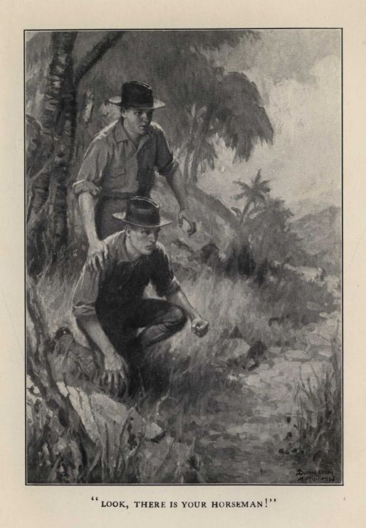 "We must take the chance," replied Dick, with no thought of wavering, and after replacing the glasses he led the way deep into a rough tangle of high trees and dense undergrowth at the roadside. Here they awaited impatiently the reappearance of the horsemen.