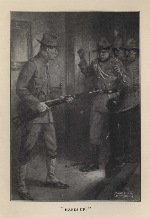 "Dick, me lad, I'd give me old pipe, I would, to be able to be on ahead with the advance instead of here with the colors, much as I love 'em," announced Dorlan as he stood in the shelter of an overhanging roof and watched the windows of a pretentious building on his right.