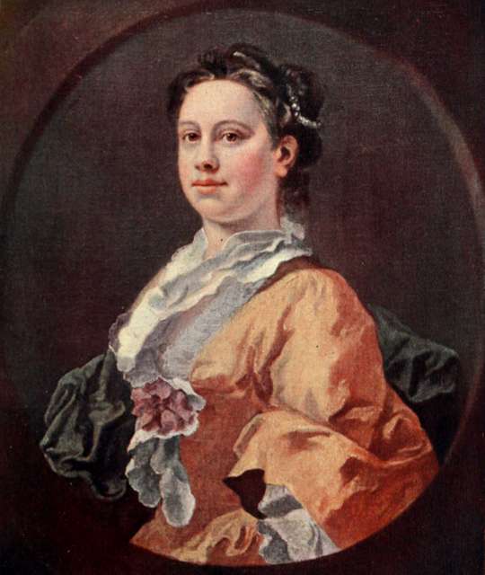 This dashing and brilliant portrait probably represents Ann Hogarth, the artist’s younger sister, who died, unmarried, in 1771. Note the vivacious and original way in which Hogarth has handled this sympathetic subject, and the skill with which he has, as it were, “substituted light and colour for paint.”