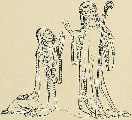 | Nun asking Pardon of an Abbess (Roy. MSS., 2 B. vii., f. 219.) |