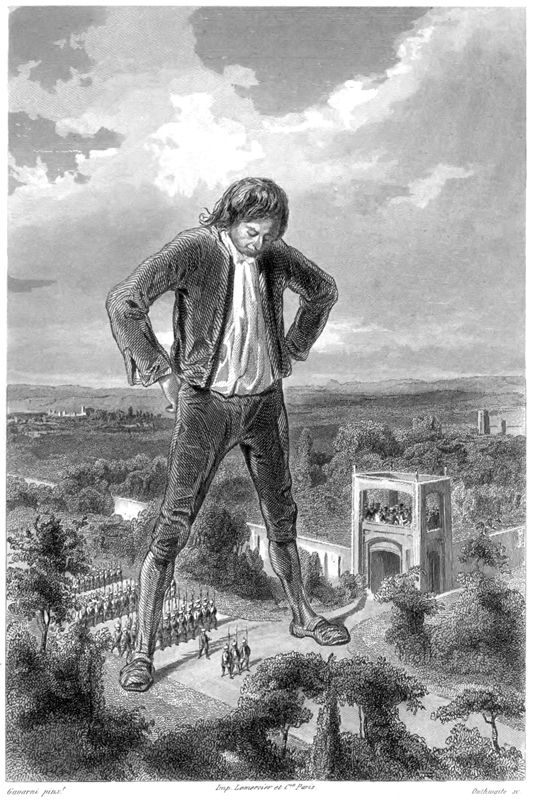 D'un bout à l'autre de l'empire, il y eut comme un vertige infini de la plus vive admiration; au pays de Lilliput, la renommée, en marchant, agrandit toute chose. Il n'était pas de cabane et de palais où l'on ne parlât de ma grandeur.