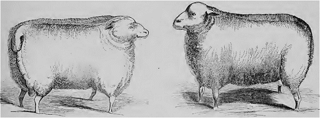 Les principes que nous venons d'exposer pour l'amélioration des races de bœufs, les Anglais les ont appliqués à tous les animaux domestiques, et surtout à ceux destinés à la boucherie. Il n'est pas un agronome français un peu instruit qui n'ait vu avec admiration comment ils sont parvenus à créer des moutons qui n'ont pas d'os pour ainsi dire, et dont l'augmentation prodigieuse du chair et de graisse n'a porté aucun préjudice ni à la finesse ni à l'abondance de la laine. Plusieurs de ces animaux, ont été présentés à la société royale d'agriculture de Derby, et ont été dessinés par les peintres que nous avons cités, il ne faut pas chercher dans ces figures les caractères ordinaires que les naturalistes emploient pour déterminer les races de moutons, car tout a disparu, contours, grâces, légèreté, sous des masses informes de laine et de graisse; et les êtres dont ces peintres ont rendu fidèlement le portrait sont presque devenus purement artificiels: ils doivent tout à l'industrie humaine, et ont entièrement perdu les caractères de leur nature primitive.
