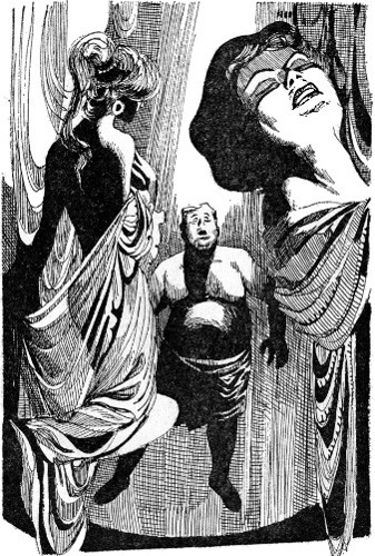 He walked over the marble floor. Out of the corner of his eye he seemed almost to discern an occasional dim figure hurrying past. He walked up two flights of stairs, seemingly alone, and yet seemingly surrounded. It was strange, and it was perfectly natural. He had never felt so alive before. Not even in a Bed had he felt himself so much of a Man. And he did not think about doing. He had not the slightest interest in it. He wanted to know, whatever this might mean. He paused in front of a door. It opened, and he entered and eased himself into a chair.
