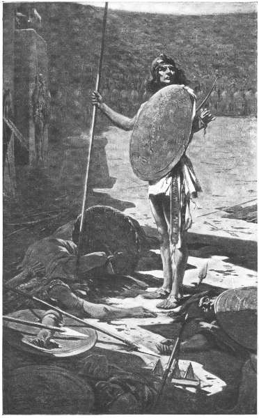 The proud head drooped, and the hero forgot his greatness and his dreams; he was the loving friend again, and as such, sorrowing and silent, repassed the second canal, and stood upon the causeway beyond. And the people, with quick understanding of what he sought, made way for him. Over the wrecks of the battle,—sword and shield, helm and breastplate, men and horses,—he walked to where the lover and his beloved lay.