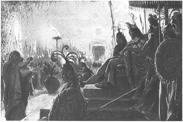 The translator has nothing to add to the explanation except brief mention that the king Cuitlahua’s reign lasted but two months in all. The small-pox, which desolated the city and valley, and contributed, more than any other cause, to the ultimate overthrow of the empire, sent him to the tombs of Chapultepec. Guatamozin then took the vacant throne, and as king exemplified still further the qualities which had made him already the idol of his people and the hero of his race. Some time also, but whether before or after his coronation we are not told, he married the noble Tula,—an event which will leave the readers of the excellent Don Fernando in doubt whether Mualox, the paba, was not more prophet than monomaniac.