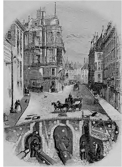 Il faut penser qu'il existe sous le sol de Paris environ cent vingt kilomètres d'égouts, qui représentent par conséquent trente lieues de rues souterraines, et environ autant de lieues de conduites d'eau. Quant aux conduites de gaz, elles sont encore bien plus étendues. Nous ne comptons pas, en outre, tous les embranchements particuliers qui coupent les conduites maîtresses pour distribuer droite et à gauche l'eau et le gaz dans les maisons ou sur la voie publique.
