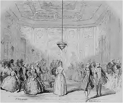 Voilà Cagliostro à Versailles, chez la marquise, où le mariage doit avoir lieu. Avant la noce, madame de Volmérange a promis aux conviés de les régaler d'une scène de magnétisme. Cagliostro a chargé Caracoli de lui amener une somnambule lucide, dont il a d'avance mis par écrit les réponses. Il vaudrait mieux sans doute qu'il fit ses affaires lui-même; mais les grands hommes sont toujours si occupés!
