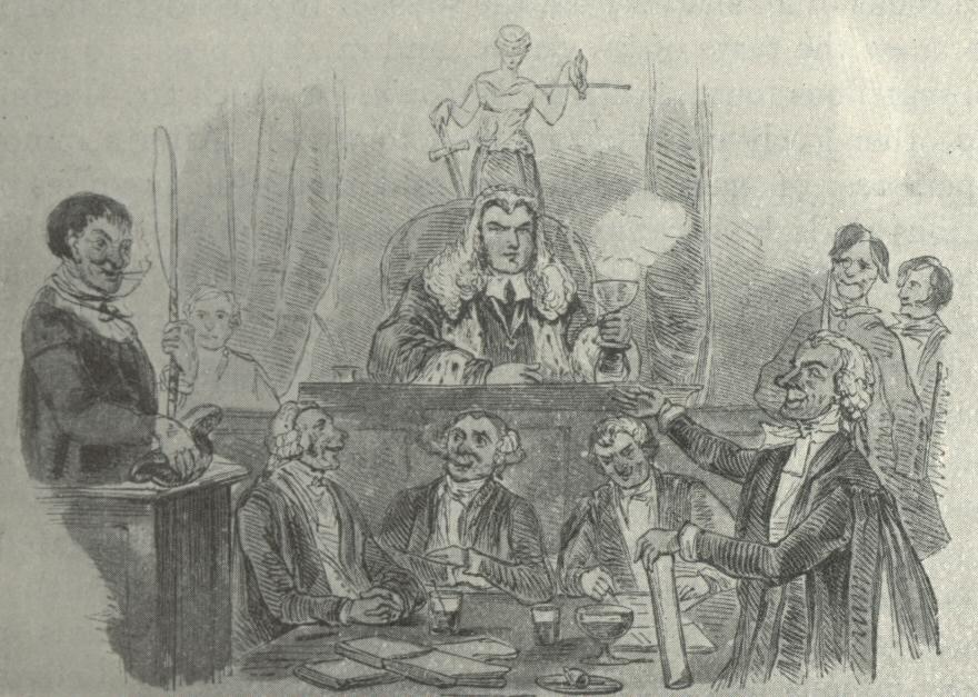 The transformation of this failing arena of British sport into the full-blooded pleasure-garden of Cremorne was effected by another Baron, though he was such only by the courtesy of Bow Street and Maiden Lane. Renton Nicholson (for that was his name), like most of the managers of Cremorne, was a man who knew a thing or two. He was born early in the century, and his boyhood was spent in the quiet village of Islington, where his two sisters kept a p. 4young ladies’ seminary. His tastes early led him to the distractions of Sadler’s Wells, and at sixteen, [4a] when he became a pawnbroker’s assistant in Shadwell, he began to acquire his remarkable knowledge of the ‘flash’ life of London in all its grades. About 1830 he opened a jeweller’s shop in the West End, which supplied the ‘swells’ of the day and their female friends, and by this time his London acquaintanceships were extensive and peculiar, consisting, as we are told, of shady journalists, players, tavern vocalists, and rooks of all shades from the welsher to the skittle sharp. He knew the taste of his public, and in 1837 began to issue the scurrilous journal called The Town, for which Dr. Maginn and other lively contributors used to write. After a minor experience of gambling-houses and doubtful premises of various kinds, he became (in 1841) proprietor of the Garrick’s Head in Bow Street, and here, in a room holding about 300 people, and fitted up like a law-court, he presided—as Lord Chief Baron Nicholson—over the judge and jury trials that were so attractive to the Londoner of the forties and fifties. The causes that came before this tribunal were chiefly matrimonial—the crim. con. cases of the time—and were such that their obscenity and heartlessness (mitigated, it is true, by flashes of wit) often made the most hardened sinner shudder. Nicholson presided over similar trials at those famous haunts, the Coal Hole and the Cyder Cellars, till his death in 1861. He was impudent in manner, obese and sensual in appearance, yet a man of real talent and geniality, gone hopelessly upon the wrong track. His apologists describe him as a sort of nineteenth-century Robin Hood, who plucked the aristocratic pigeon, but was ‘the soul of good nature’ to the poor Bohemian. [4b]