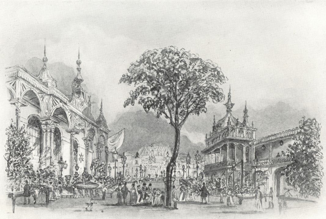 Five thousand pounds was spent in preparing for the opening of 1846, and a banqueting-hall and theatre were constructed, as well as some ‘delightful lavender bowers’ for the accommodation of the 1,500 persons who were likely to need a bowery seclusion. The gardens were rapidly getting into shape, and we can now survey them almost as they appeared till their close in 1877.