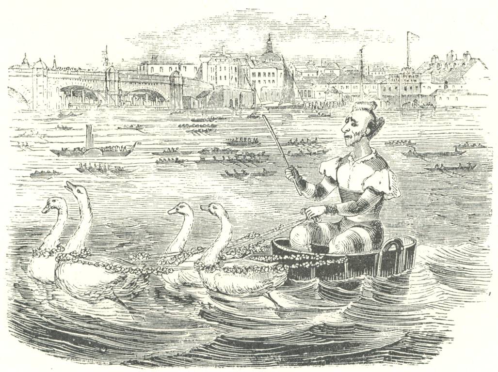 In September of the same year (1852), Madame Poitevin, ‘in the character of Europa,’ ascended from Cremorne on the back of a heifer which was attached to her balloon. This was nothing new to her or to the sight-seers of Paris, where she and her husband had made hundreds of ascents on the backs of horses, and even ‘a great many ascents with a bull.’ A pony ascent had been made by Green at Vauxhall in 1850, [9b] but the English magistrates drew the line at a heifer, and Simpson and his Europa were fined at the Ilford Sessions on September 7, 1852, for cruelty to animals.