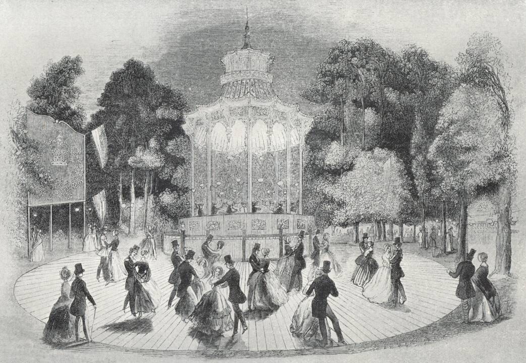 [89] Godfrey’s band also continued to perform in 1853, under C. and D. Godfrey. The orchestra was replaced by another structure in 1848. Jullien’s band was at the gardens 1845–1852, then 1856, 1857.