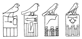 Ici je crois devoir intervertir l’ordre donné par Manéthon d’après la copie d’Eusèbe, qui place, après trois dynasties de rois-hommes, un groupe de mânes et de demi-dieux ayant régné ensemble pendant 5.813 ans; outre qu’il serait peu naturel de voir des êtres divins ou tout au moins semi-divins succéder à des hommes, nous voyons très clairement dans les fragments de Turin [49] que ce sont ces derniers qui précédèrent immédiatement Ménès. La place normale de ces mânes semble donc être après la première dynastie des demi-dieux. On a reconnu dans ces Nekyes ou mânes les Khouou des textes religieux égyptiens, divinités secondaires qui constituent la troisième ennéade héliopolitaine, d’abord les quatre génies funéraires, les Enfants d’Horus, Amset, Hapi, Douamoutef et Kebhsenouf, puis un autre Horus, Khent-Khiti, et ses quatre fils.