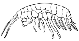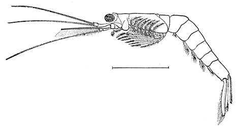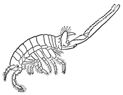 Various kinds of seaweed abound in the more sheltered parts of the rocks, and among them will be found amphipods and isopods, many of which are of species different from those of the sandy beaches. Here, too, is the little Caprella, imitating the seaweed in form, and swaying its lengthened body, which is attached to the plant only by its hind legs. On the seaweeds, as well as in the tide-pool, may be found beautiful hydroids, and on [pg009] them the curious little sea-spiders (Pycnogonidæ), animals which seem to be all legs.