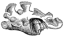 Test gelatinous or cartilaginous; attached; it grows in bunches under stones at low-water mark. Sometimes it is variously [pg477] colored, but otherwise it is repulsive in aspect. The apertures are wide apart; one orifice is eight-lobed, the other six-lobed.